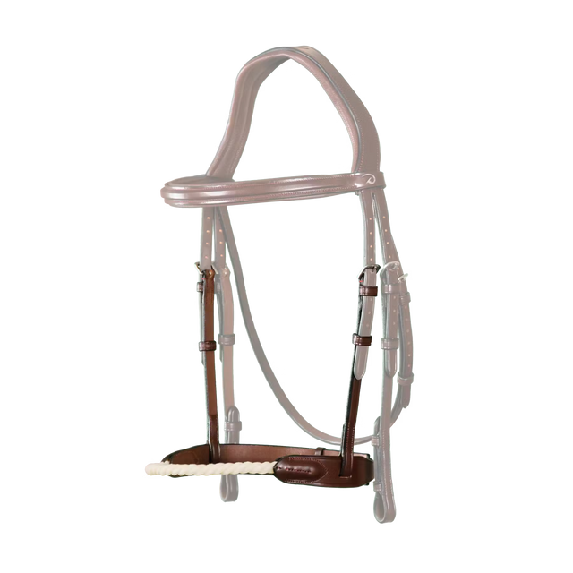 Corda composta da tre fili intrecciati cerati. Chiusura stretta con tirante posteriore montata su un morbido supporto protettivo in pelle imbottito. Questa è una capezzina da addestramento progettata per azioni brevi e non deve essere stretta. Per verificare che sia indossata correttamente, è necessario infilare due dita tra la capezzina e il naso del cavallo.