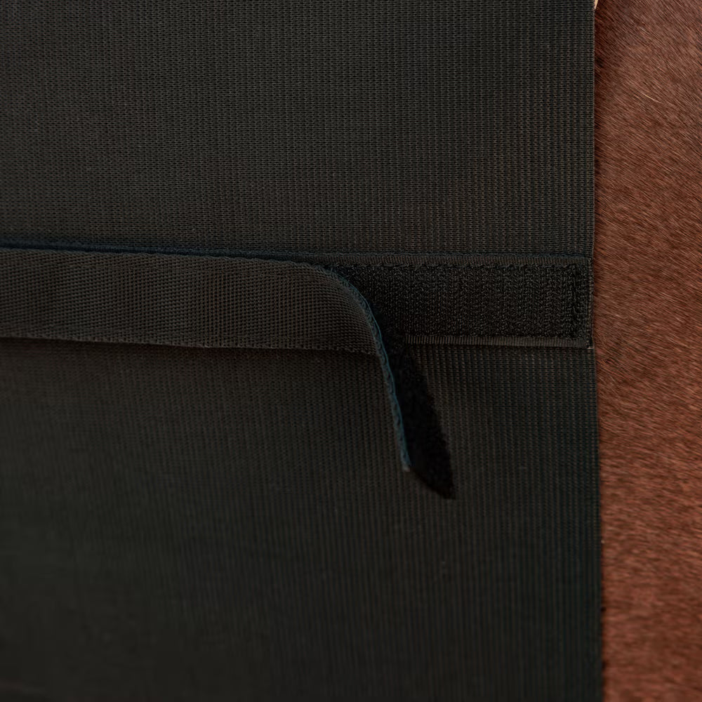 A differenza delle fasce ventrali standard, questo modello presenta un taglio più ampio di 35 cm per coprire una maggiore area della pancia del cavallo, offrendo una migliore protezione e un maggiore spazio tra le gambe del cavaliere. Realizzata in elastico resistente ma elastico, la fascia segue i movimenti del cavallo e rimane saldamente in posizione.