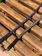 Sagomato, con 3 file di strass alternati bianco/blu.