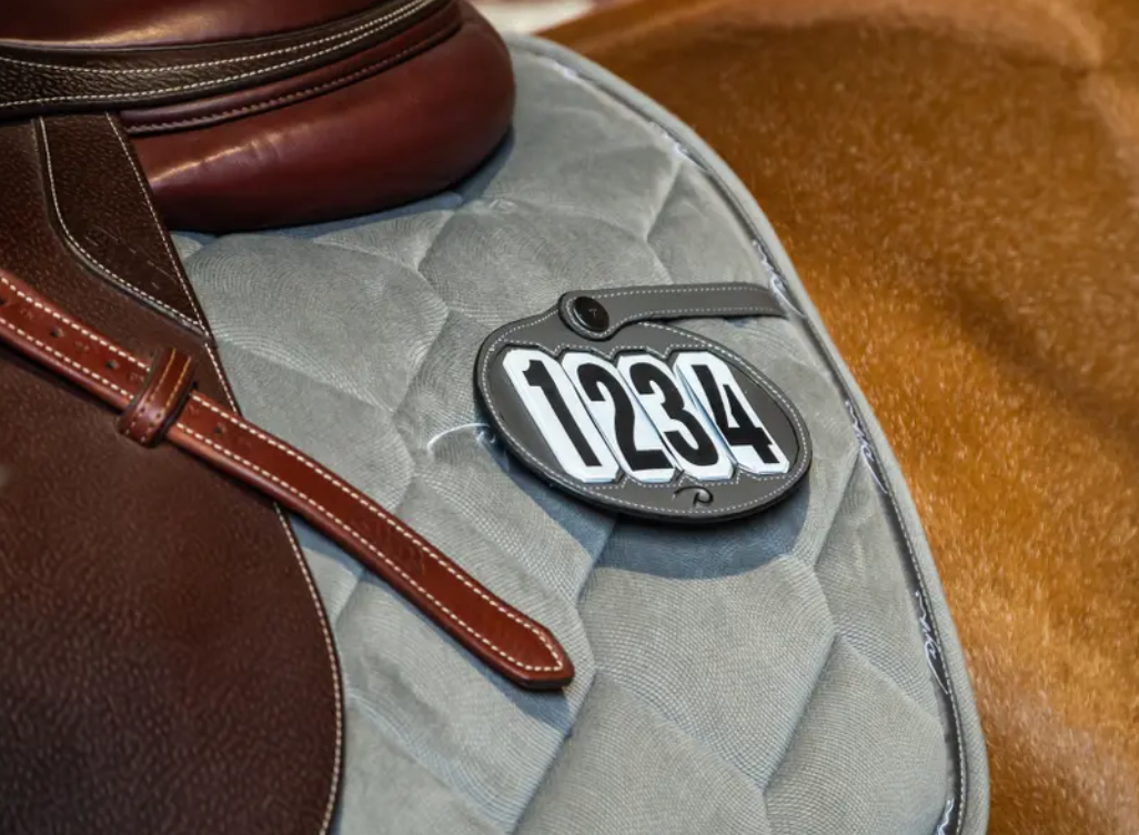 Supporto numerico a 4 cifre in similpelle marrone da aggiungere al sottosella Classic con un sistema press-stud
