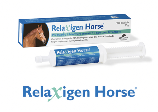 Relaxigen Horse pasta appetibile è un mangime complementare per cavalli non DPA con citrato di magnesio, FOS-fruttoligosaccaridi, olio di lino e vitamina B6, formulato per favorire il normale benessere dell’animale ed il fisiologico rilassamento in occasione di competizioni, trasporto, attività sportiva ed alterate condizioni ambientali.