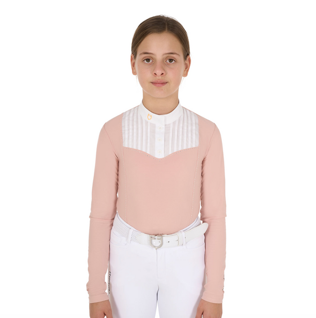 Polo da gara bambina Equestro con pettorina bianca e strass