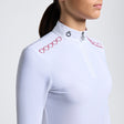 Polo da gara da bambina Cavalleria Toscana in jersey tecnico stretch con colletto in popeline bianco, zip frontale e stampa decorativa con cuori sulla spalla.