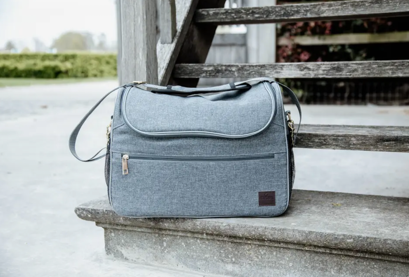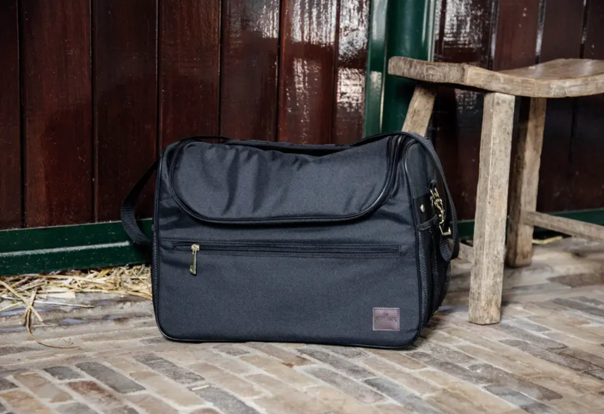 Il materiale esterno è realizzato in un resistente poliestere 600D. Questo tessuto è resistente e facile da pulire. I divisori e lo sportello all'interno della borsa da toelettatura sono realizzati con una fodera liscia antisporco, lo scomparto principale è realizzato in morbido pile. La borsa da toelettatura si abbina agli altri prodotti da viaggio e da stalla Kentucky.