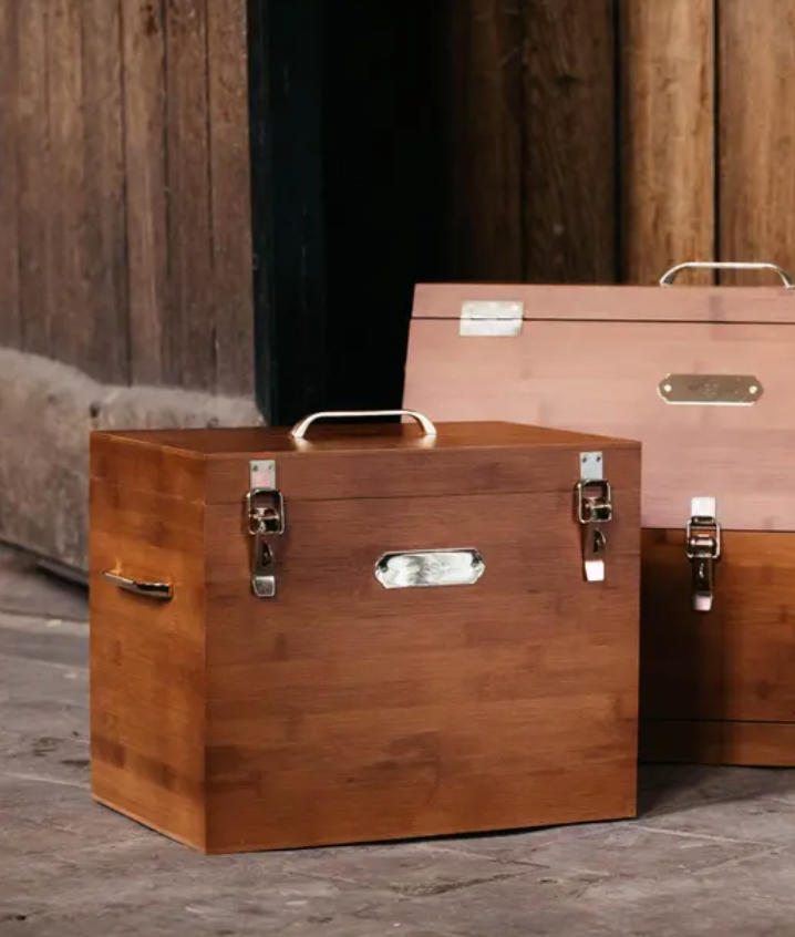 La scatola è realizzata in bambù, il che la rende extra resistente e super facile da pulire. È anche molto leggera e ha 3 maniglie dorate per trasportarla ovunque.