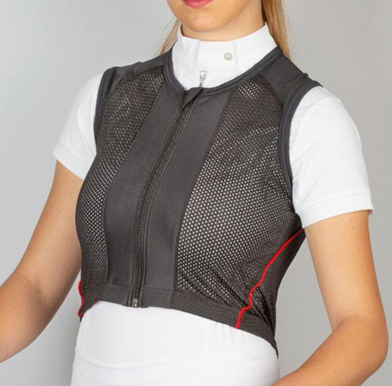 Traspirante ed elasticizzato, dotato di chiusura anteriore con zip e bordo antiscivolo per tenerlo fermo in vita. Realizzato in poliestere ed elastan, imbottito in schiuma di nitrile e PVC, per assicurare un'ottima protezione della schiena durante la cavalcata, pur risultando molto flessibile e leggero e garantendo piena libertà di movimento.