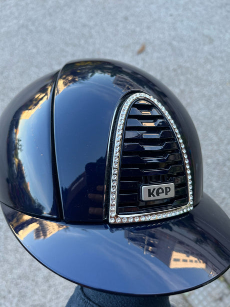 In esaurimento (1 unità)€680,00Prezzo unitario /Non disponibileCap con visiera larga e brillantini omologazione EN 1384-2023 navy/silver