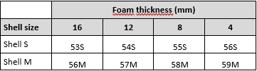 * SET A, “Imbottiture superiori e anteriori” che regolano la profondità del casco e sulla parte anteriore. E' incluso con l'acquisto del cap.