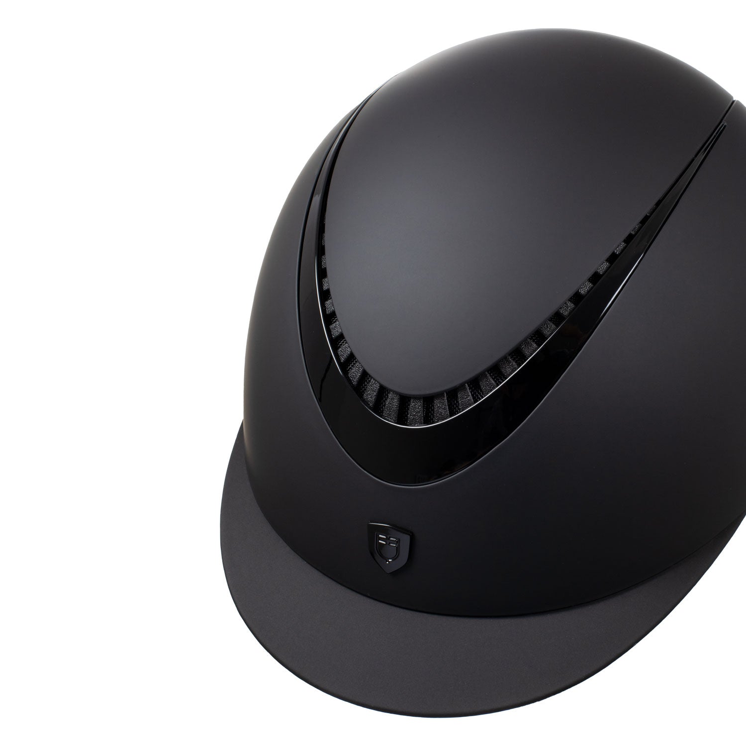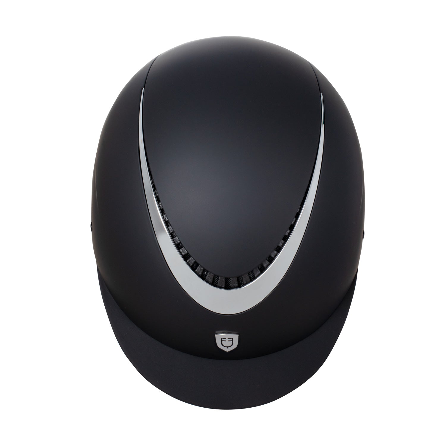 La presenza della targhetta con Logo tono su tono con il frame, rende il casco elegante e raffinato, in pieno stile Equestro.
