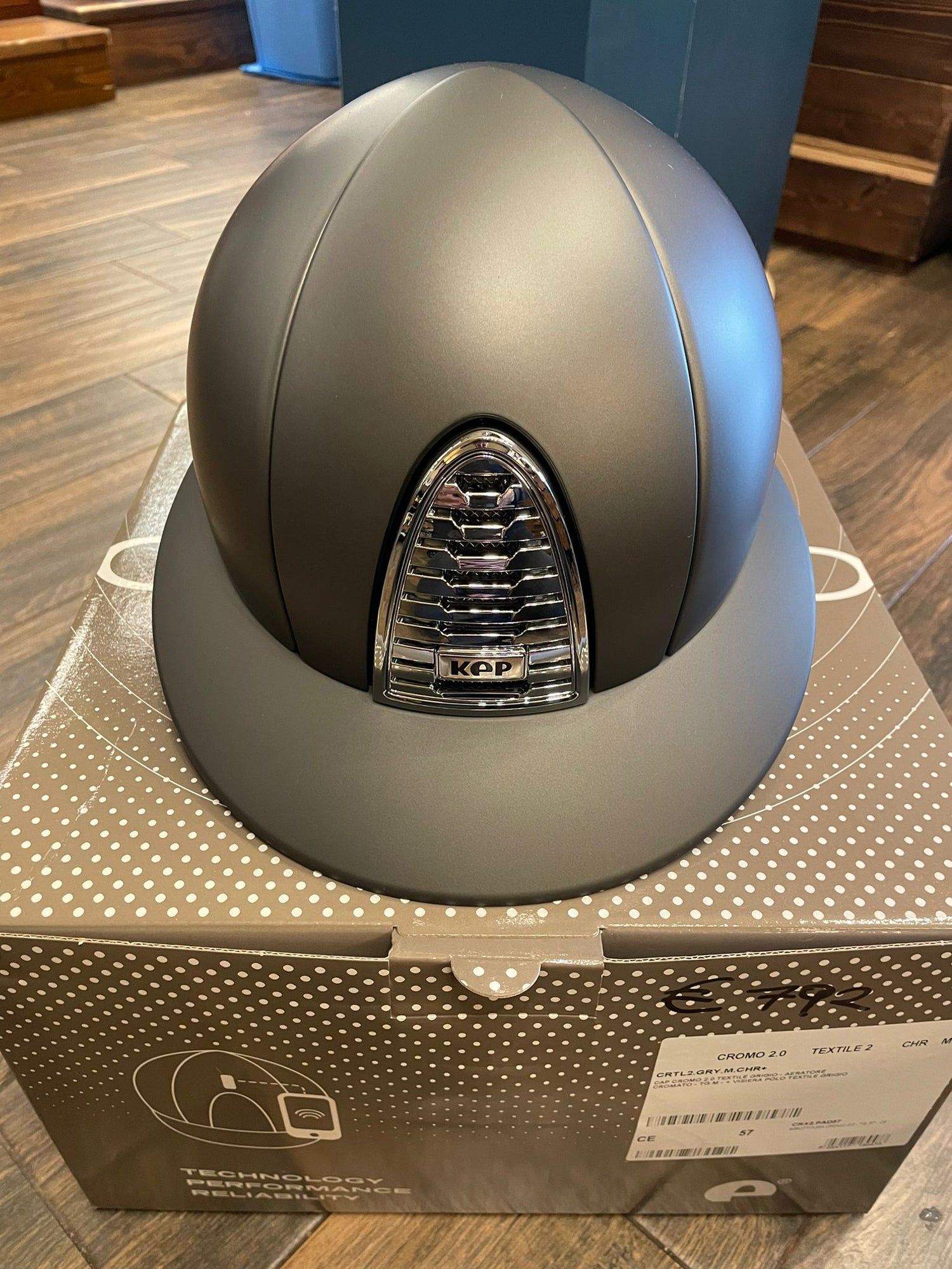 Studiato e realizzato 100% Made in Italy. Il modello CROMO 2.0 è l'evoluzione del casco Cromo. Anch'esso disponibile in diverse finiture e varianti colore, CROMO 2.0 permette al cavaliere di accedere ad ulteriori possibilità di personalizzazione in autonomia, anche dopo l'acquisto. Sia i tasselli frontali che posteriori che la visuale possono essere sostituiti dal cavaliere attraverso semplici passaggi, grazie ad un innovativo sistema meccanico ad incastro. La calotta esterna, realizzata in policarbonato con sistema in-moulding, coniuga leggerezza e resistenza. La griglia di aerazione, dal design aggressivo ed elegante, è disponibile sia con finiture a contrasto, che tono su tono. Il sistema KEP AIR CONTROL SYSTEM si arricchisce di ulteriori fessure di areazione sul retro, per garantire una maggiore traspirabilità ed il migliore controllo della temperatura interna. Il cinturino in vera pelle cucito artigianalmente a mano mantiene i cinque punti di attacco per una calzata più stabile. La nuova imbottitura, ancora più confortevole e traspirante, è realizzata in morbido tessuto proveniente da materie prime eco green. E' sempre removibile e lavabile a mano o in lavatrice a 30°. Puoi rendere unico il tuo casco personalizzandolo con preziose aerografie a mano libera o altre tecniche. CROMO 2.0 è dotato di un microchip integrato, posizionato sotto il tassello frontale, sul quale possono essere caricate le informazioni sanitarie del cavaliere, dopo aver scaricato la KEP App. In caso di necessità contribuirai a rendere più tempestivi gli interventi di primo soccorso.