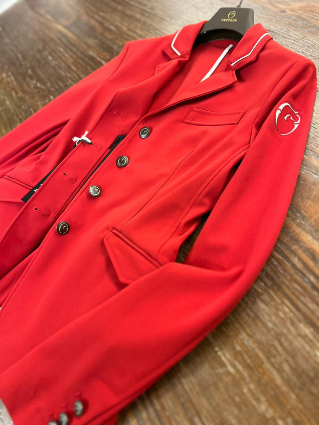 Giacca da competizione da donna sfoderata, Canberra è un classico di alta gamma. Il tessuto lavorato a maglia e molto resistente la rende perfetta per le competizioni. Allo stesso tempo, è sufficientemente morbida da garantire libertà di movimento a tutte le corporature, comprese quelle curvy. Doppia chiusura sul davanti: zip nascosta e quattro bottoni con logo Vestrum per garantire la chiusura della giacca. Dettagli a contrasto con piping, tasche laterali con patta e logo laser sulla spalla. Questa giacca è compatibile con il sistema Free Jump Airbag.