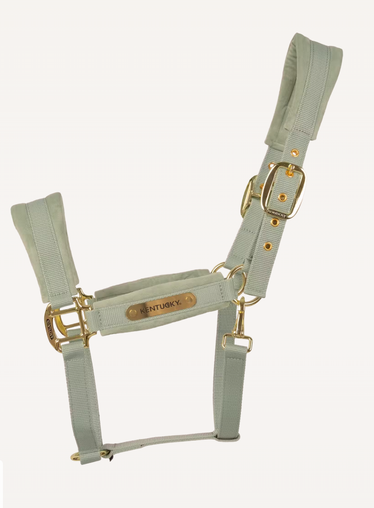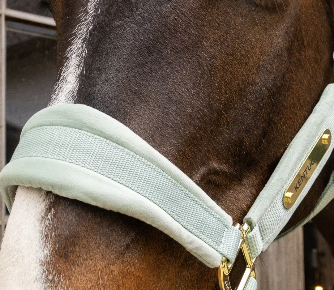 Per tutti gli appassionati della nostra attrezzatura in velluto, ora abbiamo una cavezza in velluto. La targhetta sulla cavezza può essere girata e personalizzata con il nome del tuo cavallo, ad esempio.