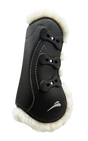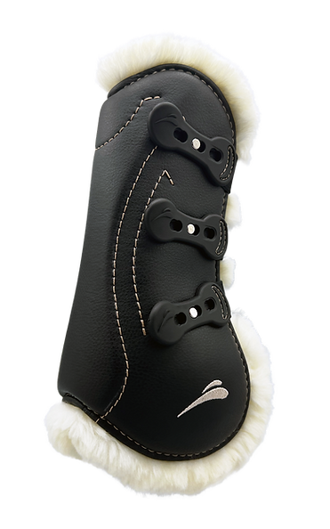 The external material is a 3mm synthetic microfiber, the same we use for our Essential girths collection, 3 shock absorbing layers on the tendon area assures great performances in terms of impact reduction, reinforced TPU shell gives to the boots an extra safety, finally fluffy artificial fur is final touch for the best of comfort.