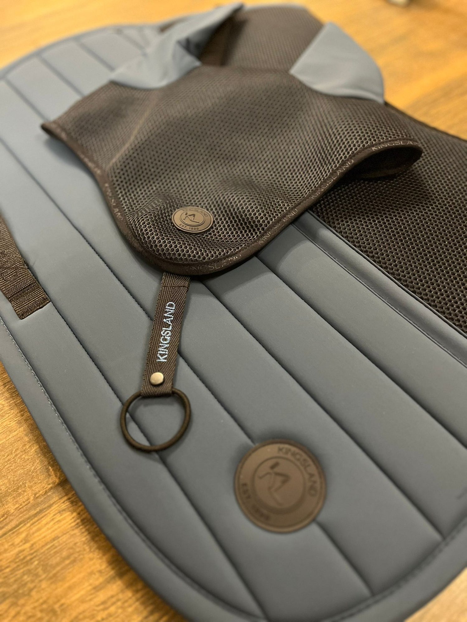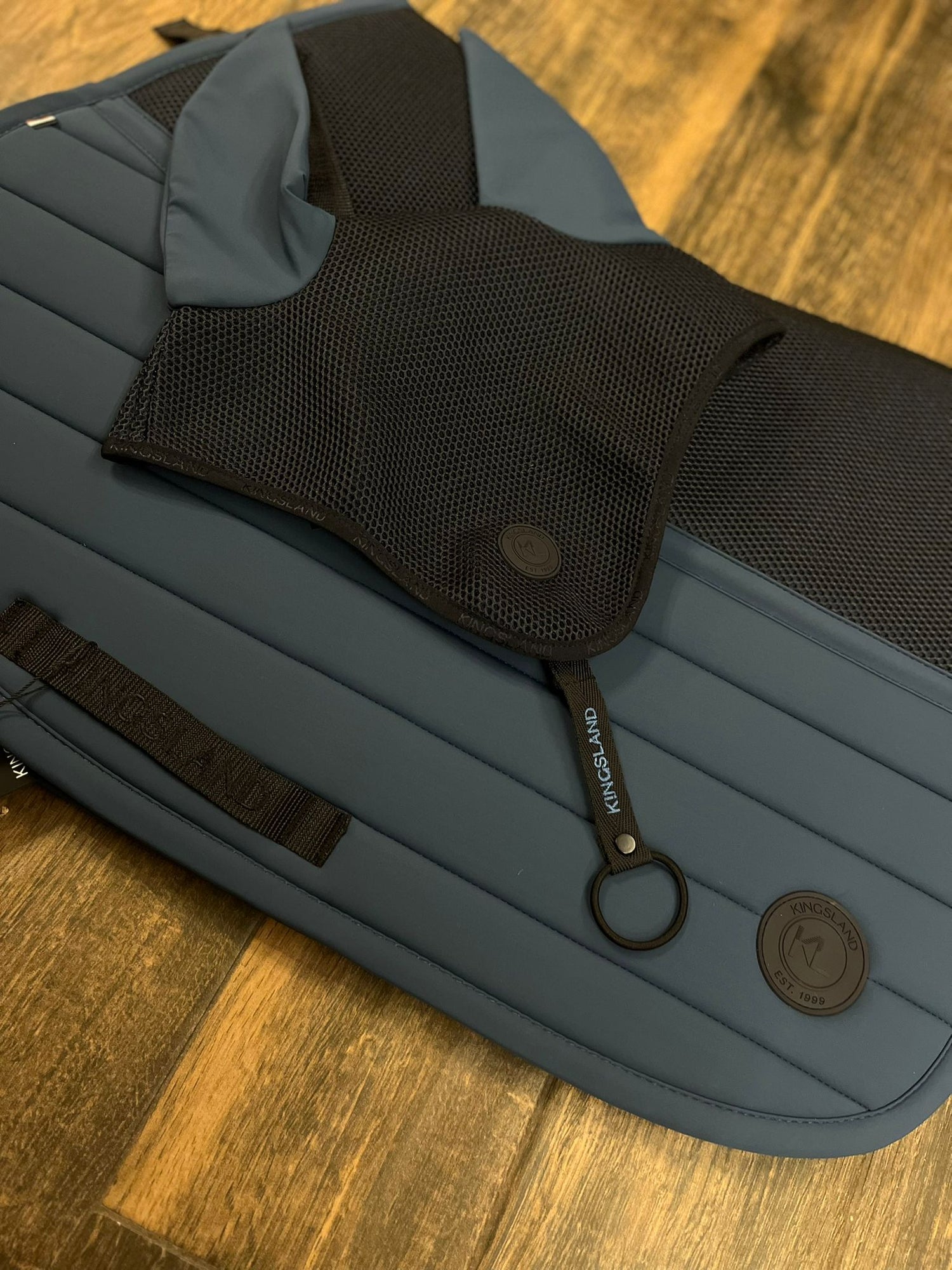 Il sottosella KLMaxine Jumping Saddle Pad Blue Sargasso Sea è realizzato con materiali tecnici traspiranti e una costruzione a mesh 3D che favorisce la circolazione dell’aria e l’eliminazione dell’umidità, mantenendo il cavallo asciutto e confortevole anche nelle sessioni più intense. La fodera interna aiuta a minimizzare gli sfregamenti e a garantire comfort durante l’allenamento e le competizioni. Il design moderno combina funzionalità e stile, con dettagli eleganti come i ricami del logo Kingsland e le finiture curate.