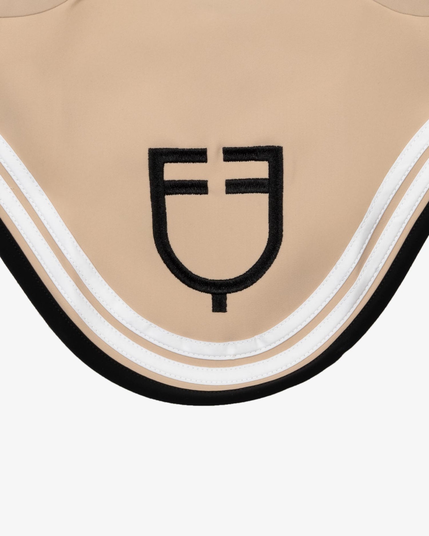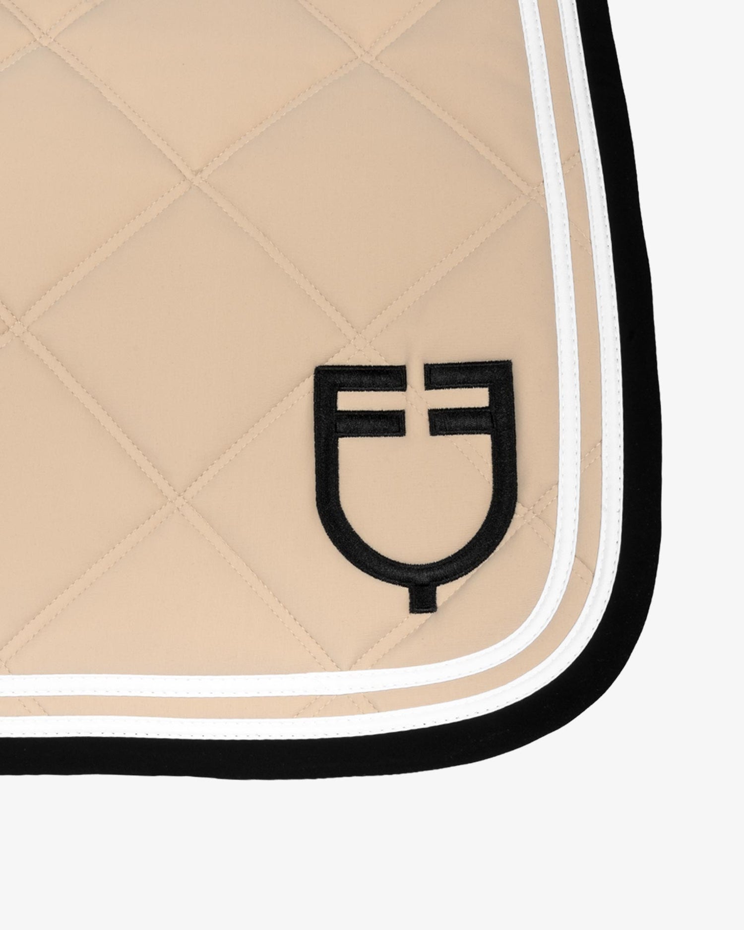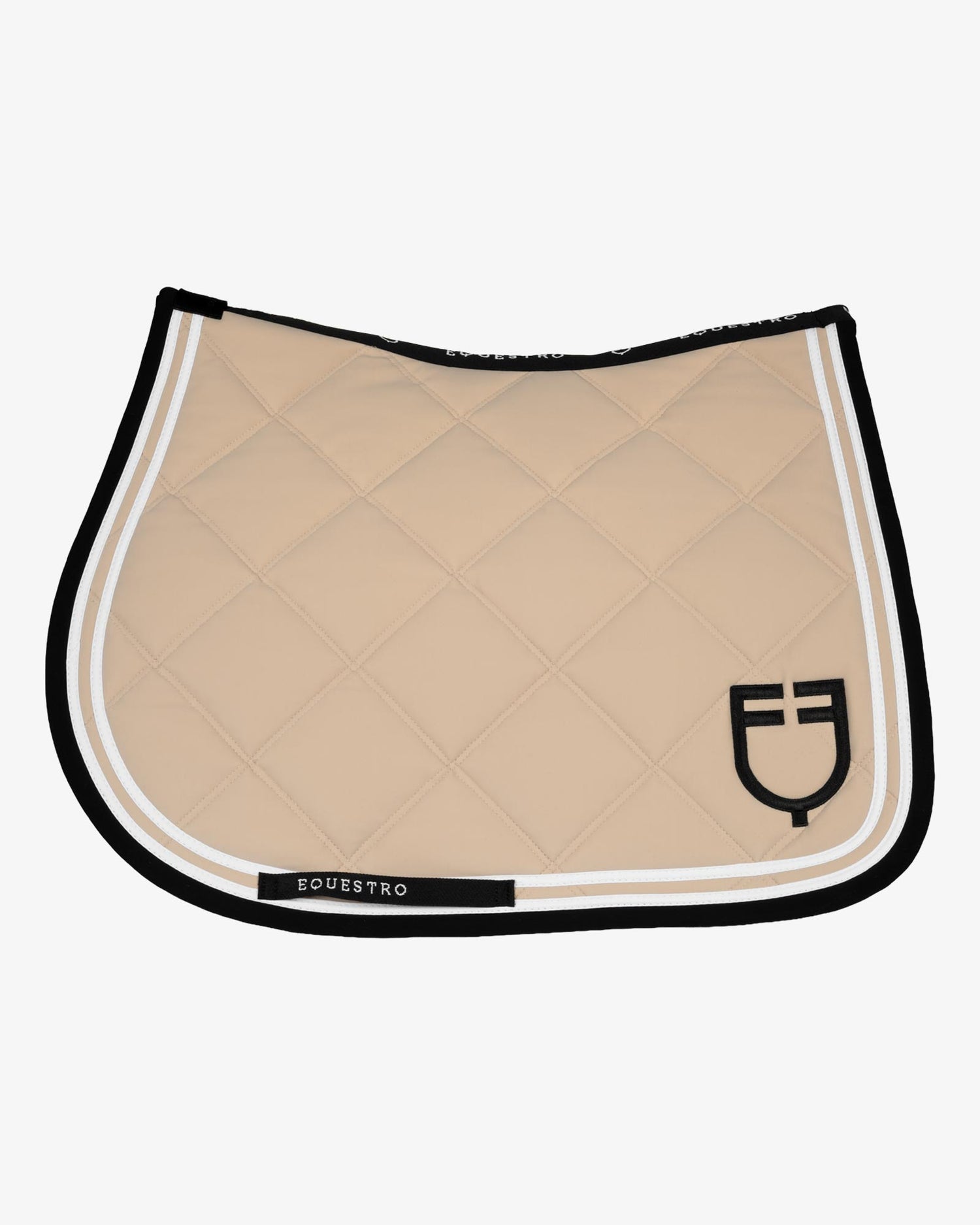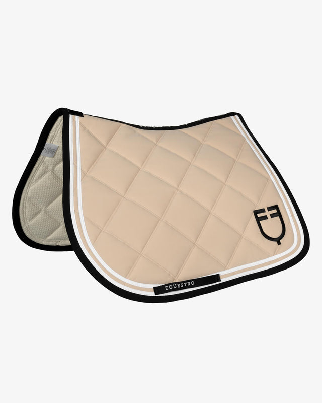 Sottosella da salto in tessuto tecnico con trapuntatura a rombi e decorazione con doppia striscia lungo i bordi. Equilibrio ideale tra resistenza, traspirabilità e stile.