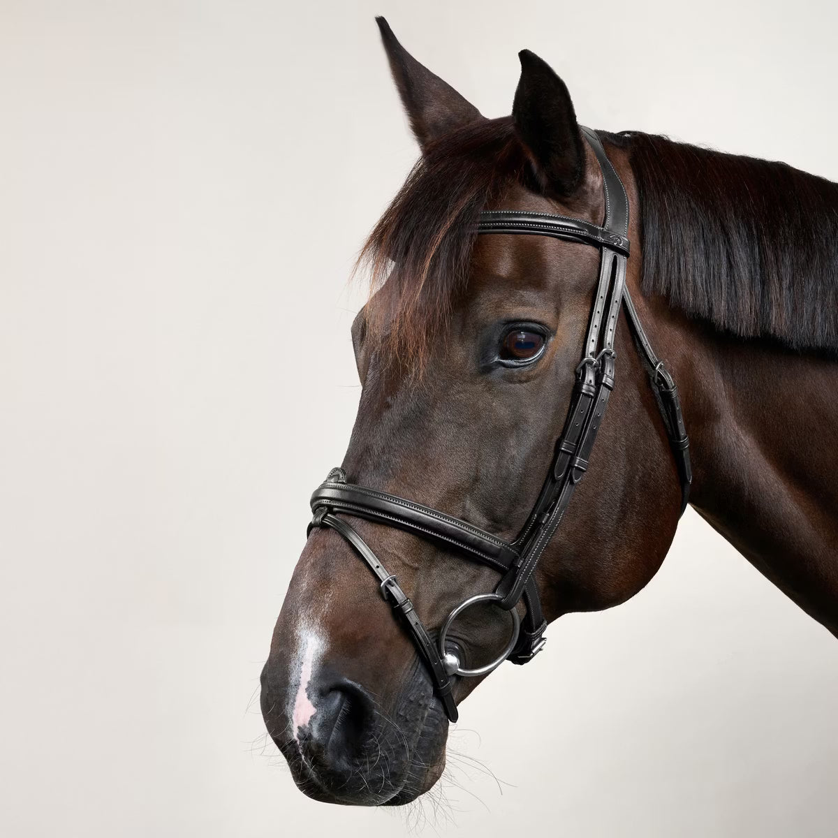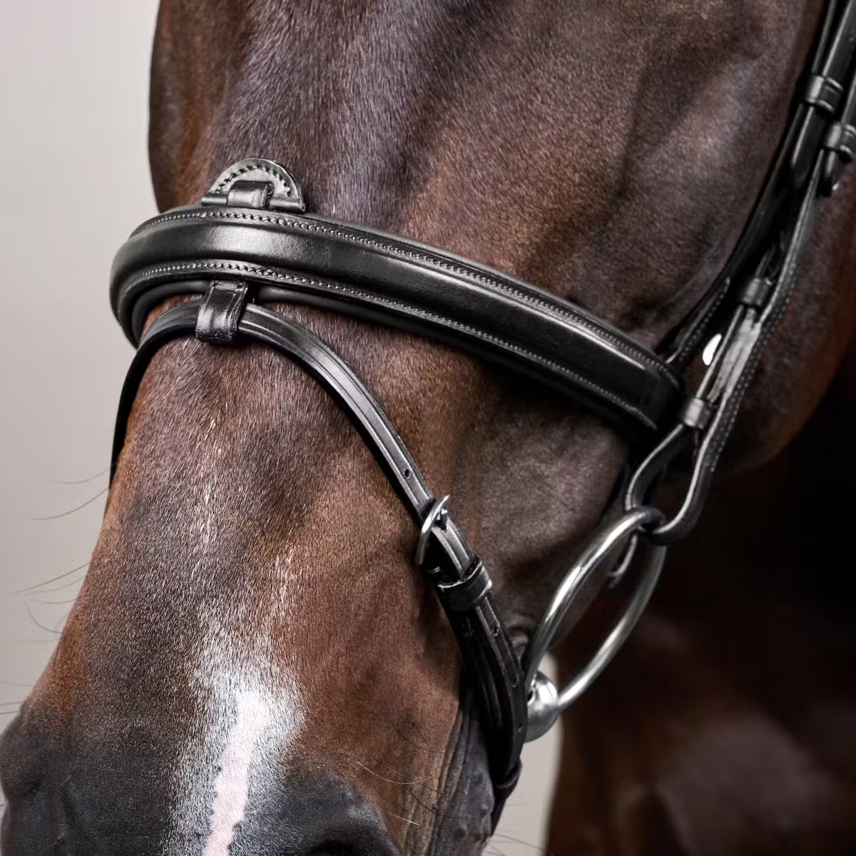Ergonomia Il design anatomico della briglia è studiato per rispettare la forma naturale della testa del cavallo, riducendo la pressione sui nervi facciali, sulla nuca e sulla mascella. Il cinturino nasale è da 1/2" (13 mm). L'attacco del cinturino nasale può essere rimosso.
