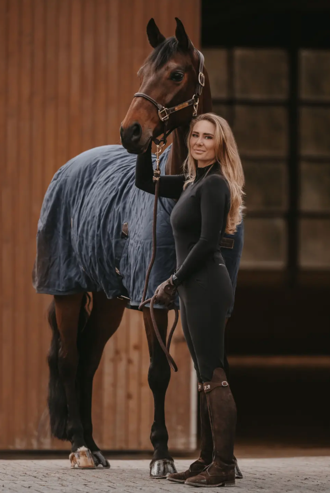 Il tessuto esterno trapuntato quadrato in poliestere 600D è molto resistente agli strappi. Questa coperta non contiene alcun riempimento, tuttavia, la pelle artificiale di coniglio crea minuscole sacche d'aria che intrappolano e mantengono la salute del corpo del cavallo. Grazie a questa fodera artificiale della pelle di coniglio, rimane al suo posto dopo il rotolamento. La pelle artificiale di coniglio impedisce anche lo sfregamento e conferisce al cavallo un pelo lucido.