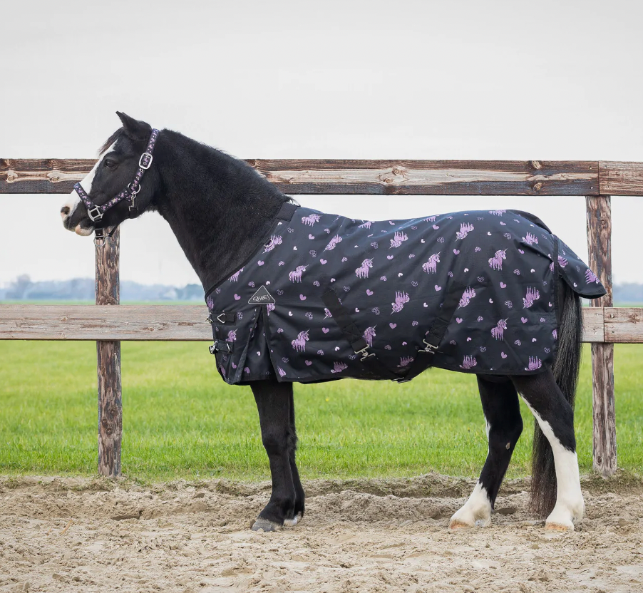 Questa coperta della collezione Lize protegge il tuo pony dal freddo e dalla pioggia. Grazie ai soffietti, alla doppia chiusura frontale a sgancio rapido, alle cinghie incrociate, alle cinghie per le zampe e al copricoda, il tuo pony potrà muoversi liberamente. Una coperta ideale da utilizzare durante tutta la stagione invernale!