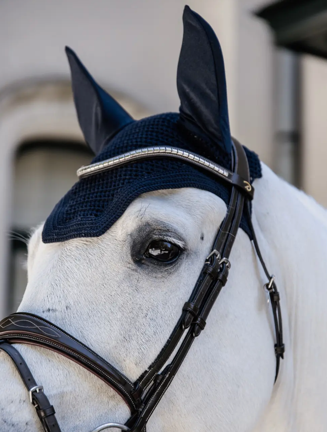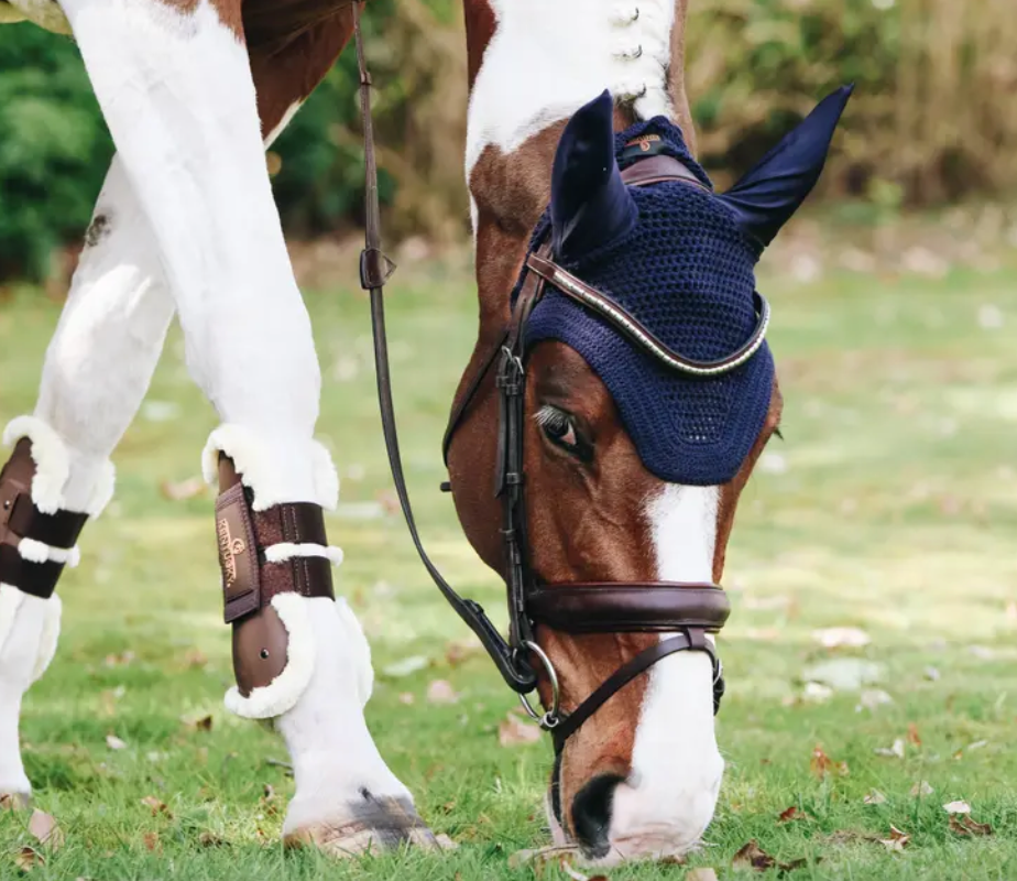 Accanto ai nostri veli a mosca standard, ora abbiamo sviluppato un modello basato sulla combinazione del look americano estremamente popolare e dell'esperienza di Kentucky Horsewear. Il Fly Veil Wellington protegge le orecchie del cavallo dalle mosche durante la guida. È a tuo piacimento ricamare un logo poiché il Fly Veil Wellington non ne ha uno visibile sulla fronte.
