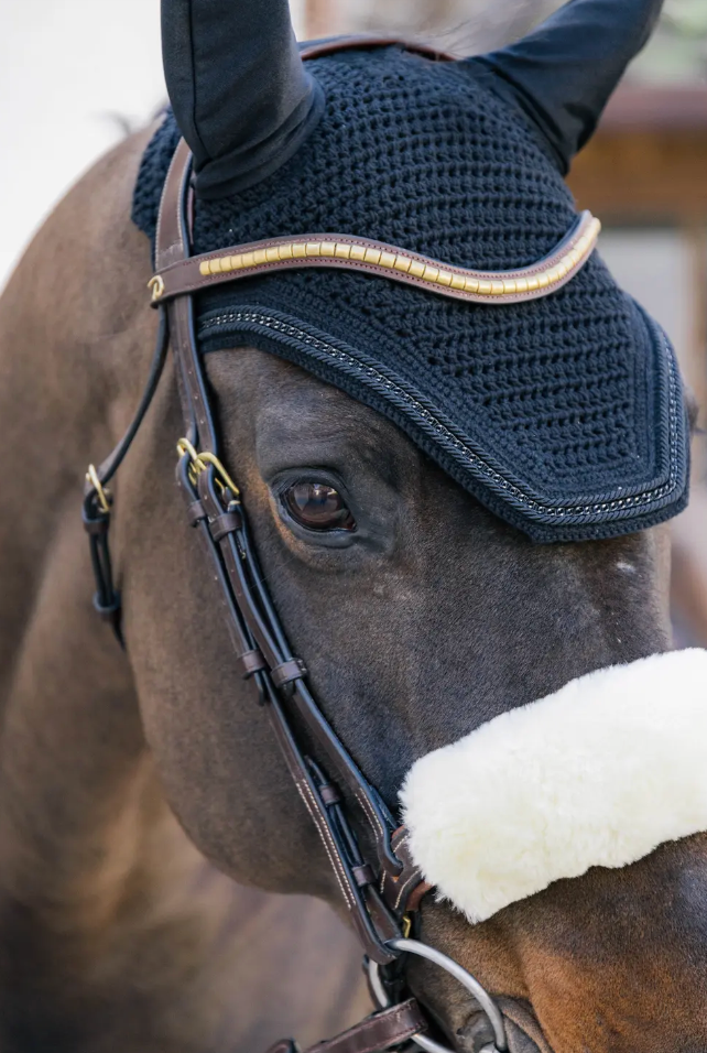 Scegli un look unico con questa catena di metallo Wellington per velo antimosche. Questo velo antimosche Kentucky Horsewear protegge le orecchie del cavallo dalle mosche durante la guida.