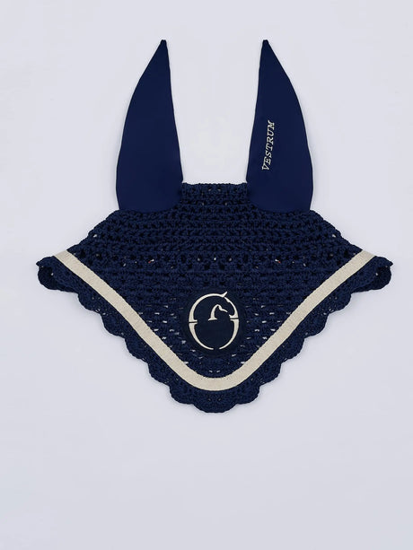 In esaurimento (1 unità)€75,00Prezzo unitario /Non disponibileCuffietta per cavallo ad uncinetto Vestrum blu con bordo bianco