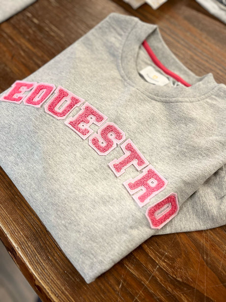 In esaurimento (2 unità)€120,00Prezzo unitario /Non disponibileFelpa da donna grigia con scritta Equestro fucsia