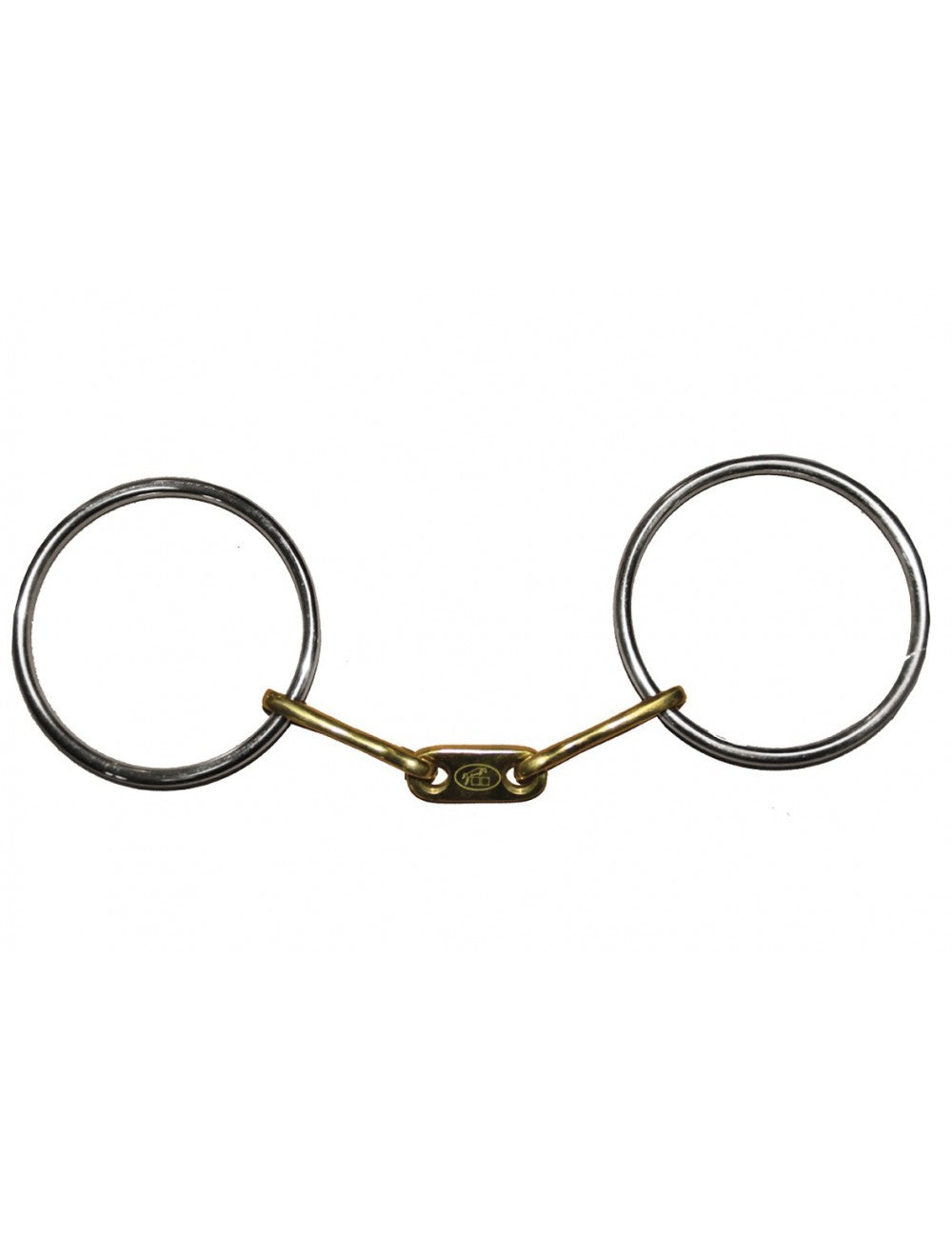 Composizione : morso francese con anelli da 90 mm e cannoni spessi 5 mm in argento tedesco (65% rame, 23% zinco, 12% nichel) una lega rilassante e solida.
