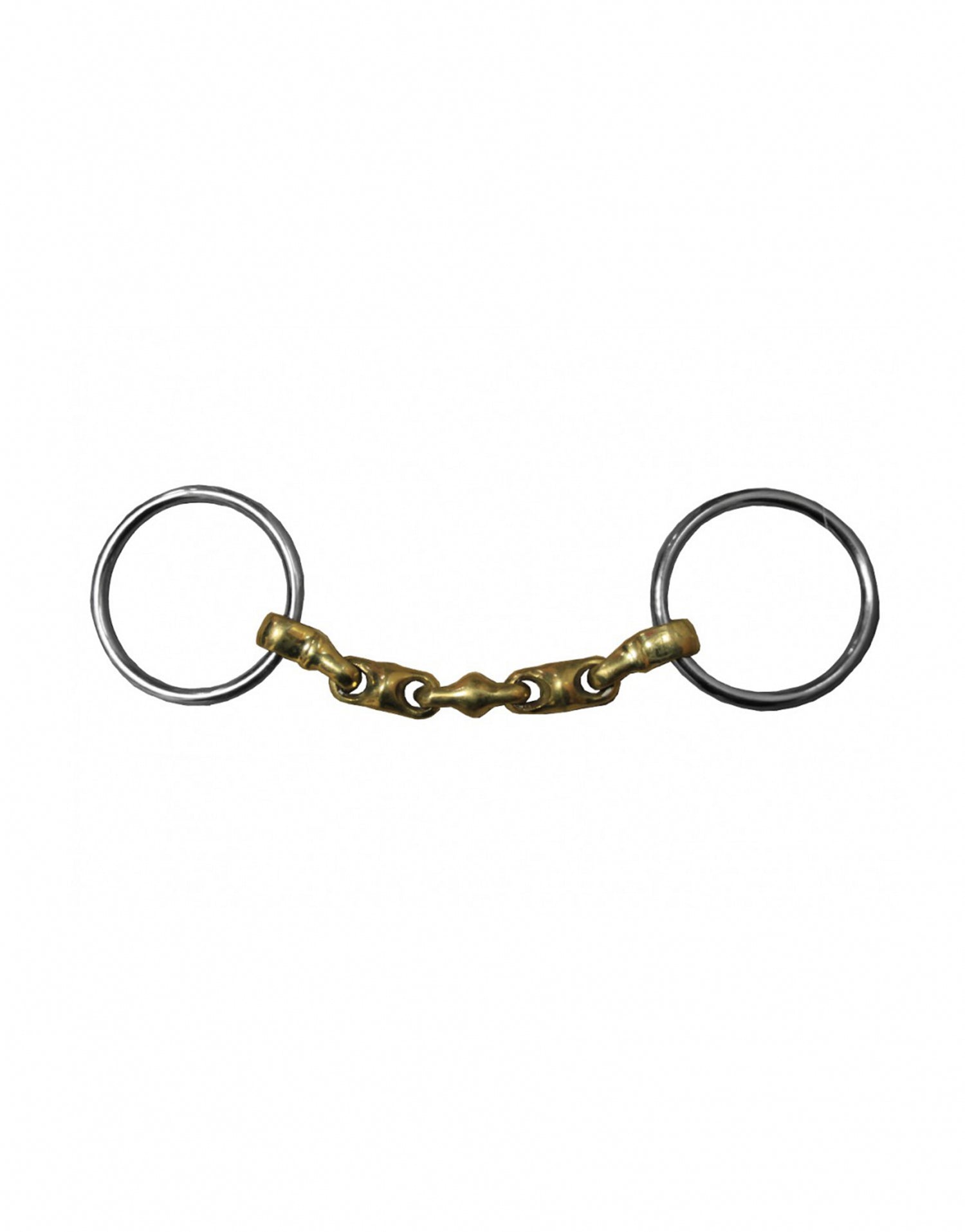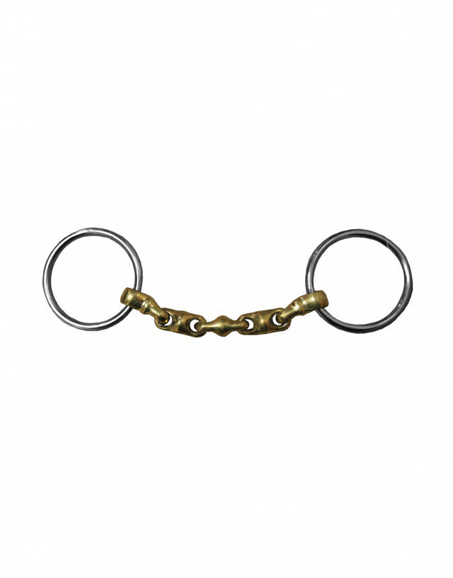 Composizione: punta a 2 anelli da 60 mm, canna standard da 17 mm in German Silver (65% rame, 23% zinco, 12% nichel), una lega solida e rilassante. Effetto: la punta a 2 anelli è la punta più semplice in azione, sia per il cavaliere che per l'azione nella bocca del cavallo. Il cannone a sfera permette di dividere i punti di appoggio in modo da avere un cavallo più leggero nel lavoro. Istruzioni per l'uso: Questa punta è perfettamente adatta per non occupare troppo spazio nella bocca del cavallo e funzionerà perfettamente in combinazione con una punta per briglia. Dimensioni: 125 e 135 Consigli per la cura: sciacquare bene la punta dopo ogni utilizzo per limitare il deposito di residui e causare disagio al cavallo.