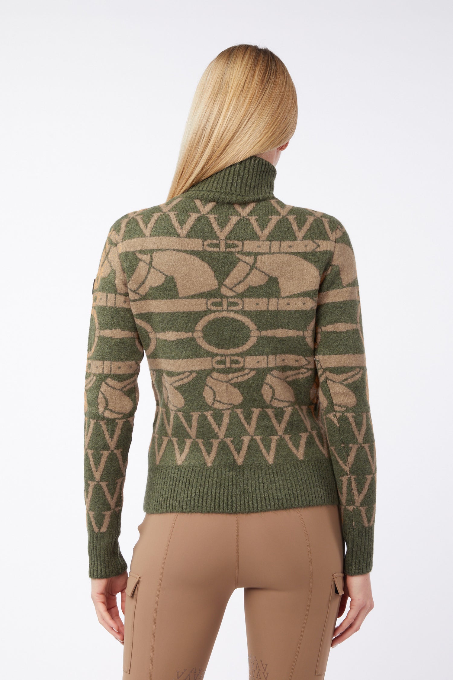 Ansan è un maglione da donna a collo alto. Il maglione è impreziosito da motivi a intarsio su tutta la lunghezza. Il design e i bordi a costine su polsini, orlo e colletto aggiungono un tocco di eleganza e originalità.