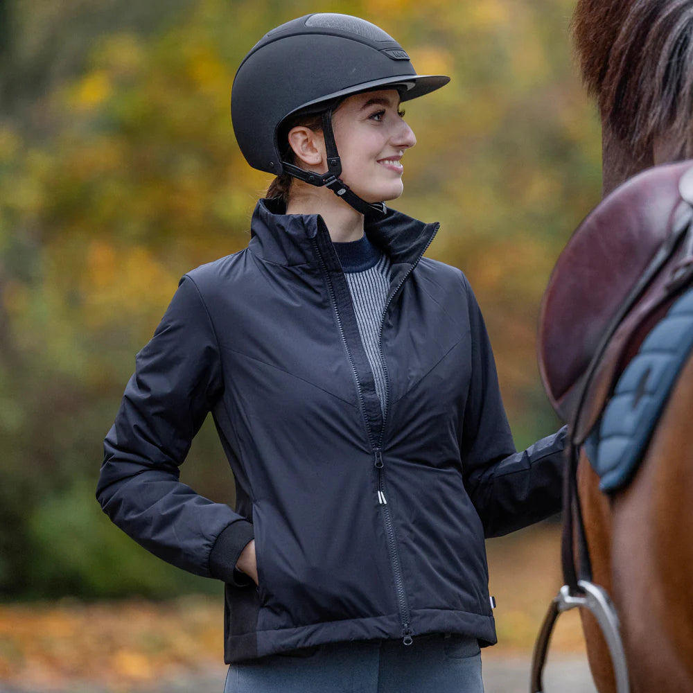 Rimani asciutta e comoda con la giacca da equitazione imbottita e impermeabile da donna KLMontana, progettata specificamente per le cavallerizze che danno importanza sia allo stile che alla funzionalità. Questa giacca ibrida aderente combina isolamento termico e materiali traspiranti, rendendola perfetta per le passeggiate autunnali o come strato intermedio durante i mesi invernali.