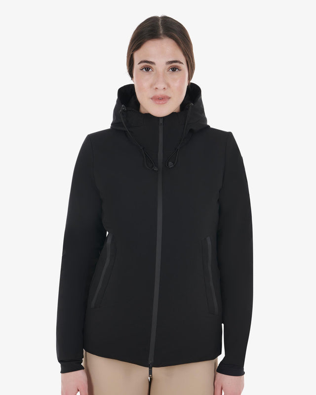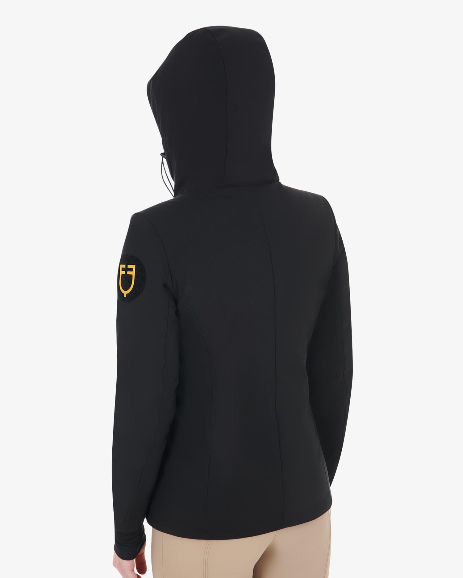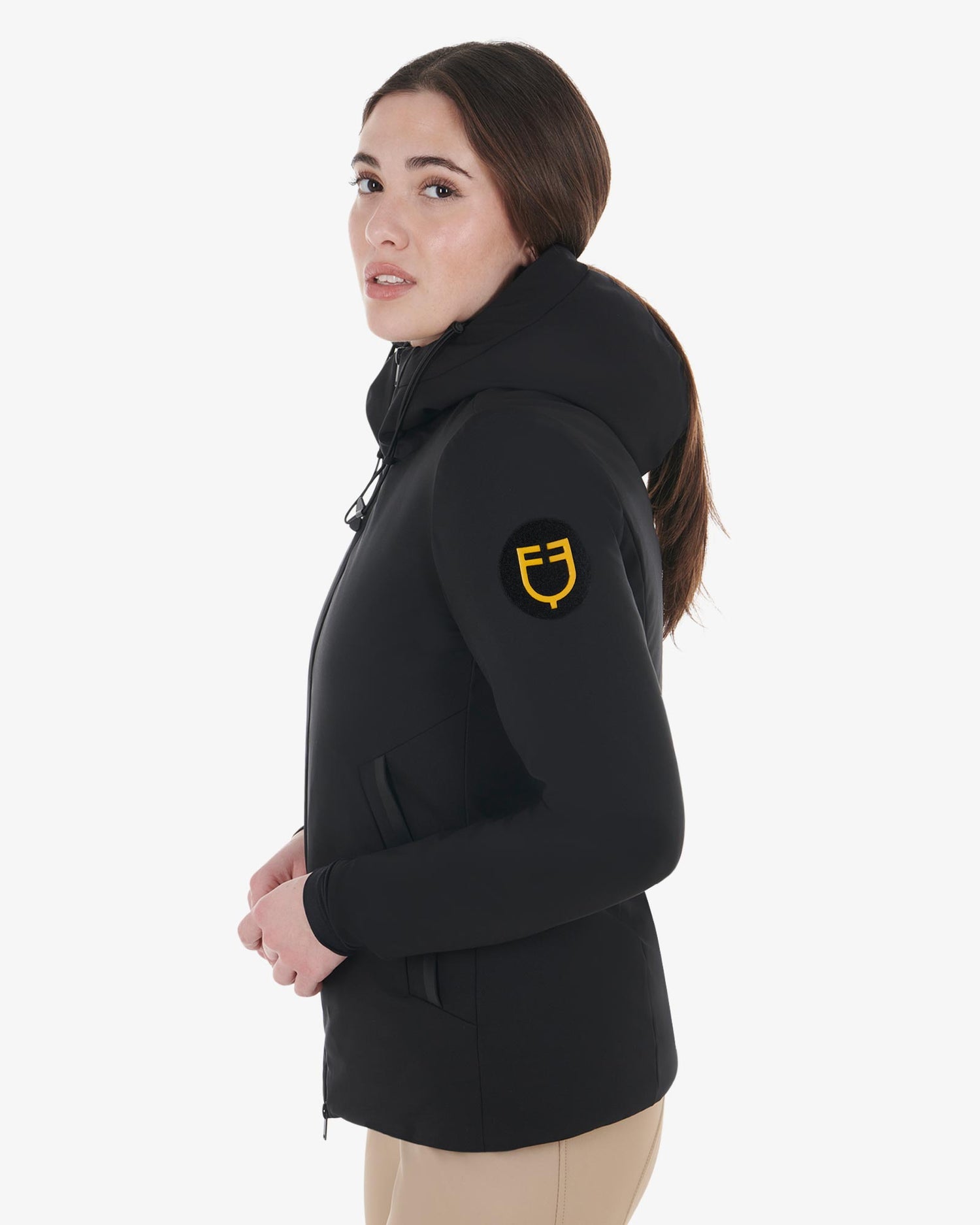 Piumino da donna in tessuto tecnico slim fit con zip antivento, calda, confortevole e idrorepellente dotata di cappuccio e tasche laterali con zip.