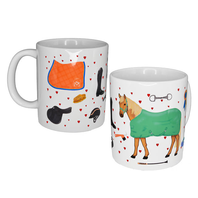 TAZZA CON MOTIVO EQUESTRE TEMA CUORICINI IN CONFEZIONE REGALO.