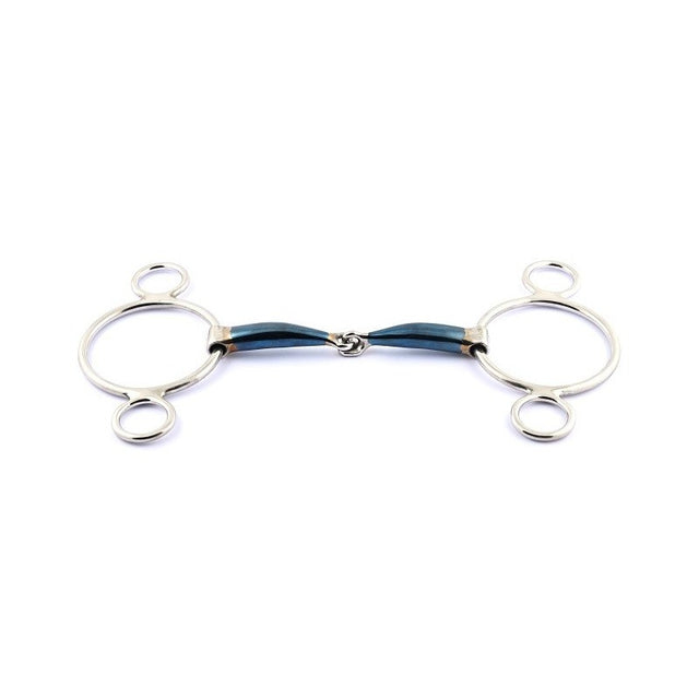 Effetto : l'azione di questo morso inviterà il cavallo ad abbassare la testa. L'inserto Classic a 3 anelli ha un effetto leva più diretto rispetto a quello tedesco.  L' acciaio blu si ossida con l'aria e l'umidità creando un sottile strato di ruggine dal sapore dolce. Stimolerà la produzione di saliva e permetterà al cavallo di rilassarsi naturalmente. Il cavallo sarà più a suo agio e sopporterà di più il morso. Il colore della punta diventerà marrone grigiastro a causa di questo processo di ossidazione.
