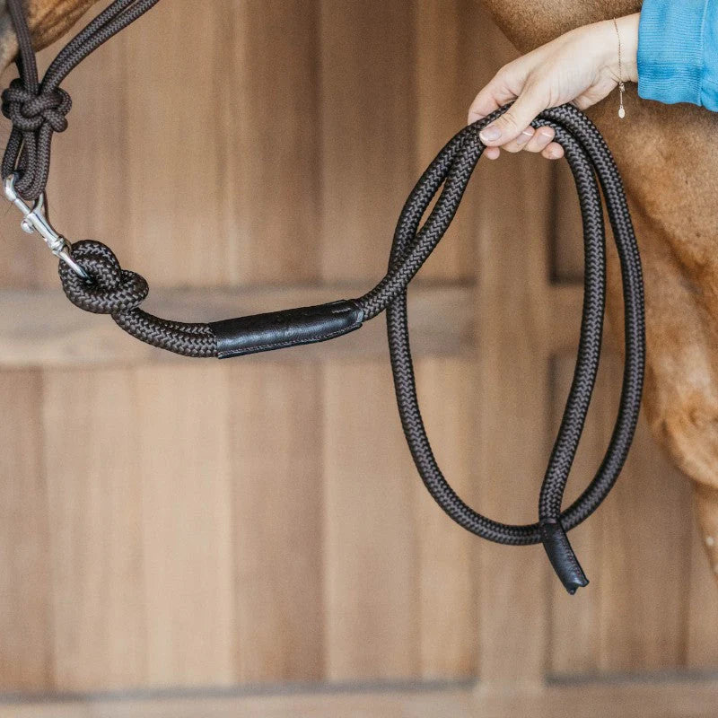 Questa guinzaglia con moschettone rimovibile ti consente di condurre il tuo cavallo più facilmente.