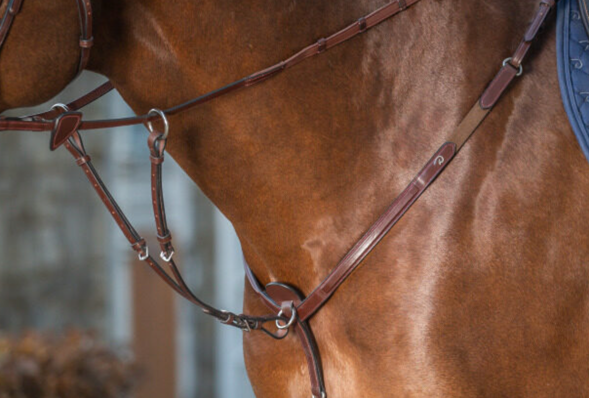 Martingale regolabile ad anelli, si attacca a un yoke o a un collare di caccia con una fibbia a rullo.