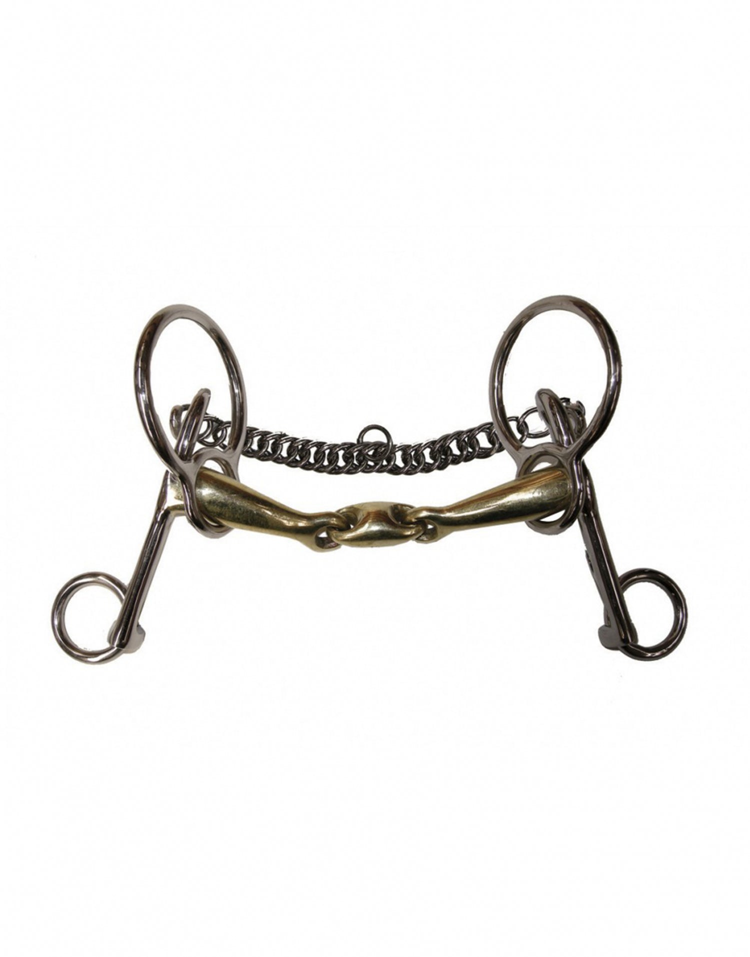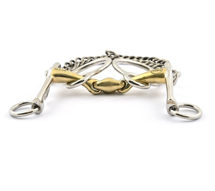Effetto: l'imboccatura Swales ha alcune somiglianze con il Pelham. È usato con un singolo paio di redini e una catena barbozzale ed è meno restrittivo del Pelham in quanto non ha alcuna azione sull'angolo testa/collo.