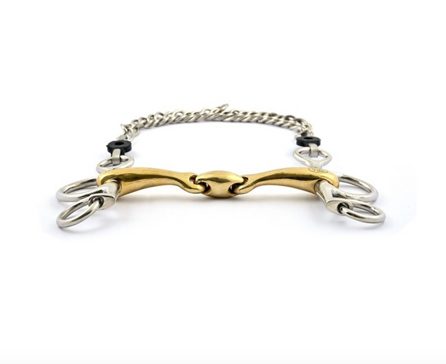 Suggerimenti : ogni morso Pelham può essere utilizzato direttamente con due redini, con passanti o con quattro redini. Pertanto, l'azione del cordolo può essere attenuata utilizzando altri tipi di cordolo come quelli in pelle o nylon.