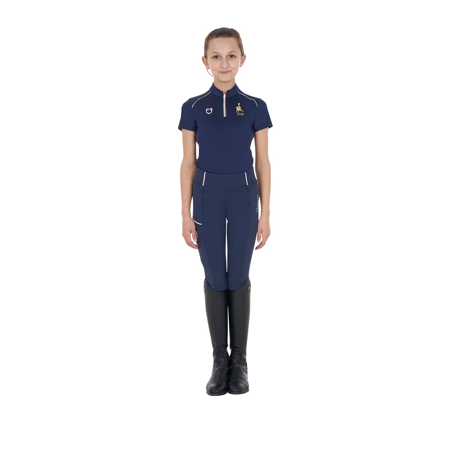 Polo bambini Equestro X FISE slim fit in tessuto tecnico a mezza manica. Traspirante ed elasticizzata.