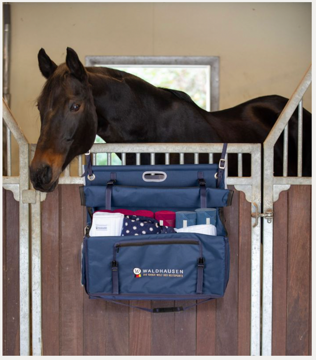 L’accessorio perfetto per tenere in ordine il box. Offre molto spazio per protezioni degli arti, prodotti per la pulizia, ecc. Facile da fissare al box grazie a due cinghie.