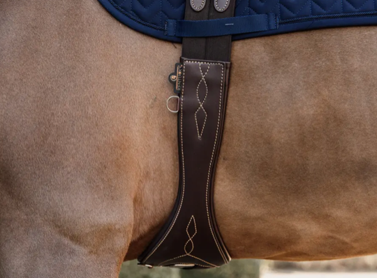 Appositamente sagomato e progettato per seguire il movimento naturale del cavallo, il Kentucky Horsewear Anatomic Sottopancia offre comfort e libertà. Allevia spalle e gomiti del cavallo, permettendo di respirare meglio limitando comunque il rischio di lesioni. È dotato di elastici su entrambe le estremità per equalizzare la pressione, nonché tre anelli a D per accogliere l'attrezzatura scolastica e una fibbia per fissare il pettorale al sottopancia. Gli elastici sono molto resistenti e rimangono fermi in quanto sono tre doppi. Il sottopancia anatomico presenta un interno protettivo in EVA. Il sottopancia è realizzato in pelle artificiale, rendendolo 100% amico degli animali e di facile manutenzione. Kentucky Horsewear ha sviluppato un Tack Cleaner per pulire la nostra pelle artificiale. Molto facile ed efficiente! La pelle artificiale non assorbe sporco, sudore o acqua ed è quindi molto resistente! Non cambia colore e non si danneggia facilmente.