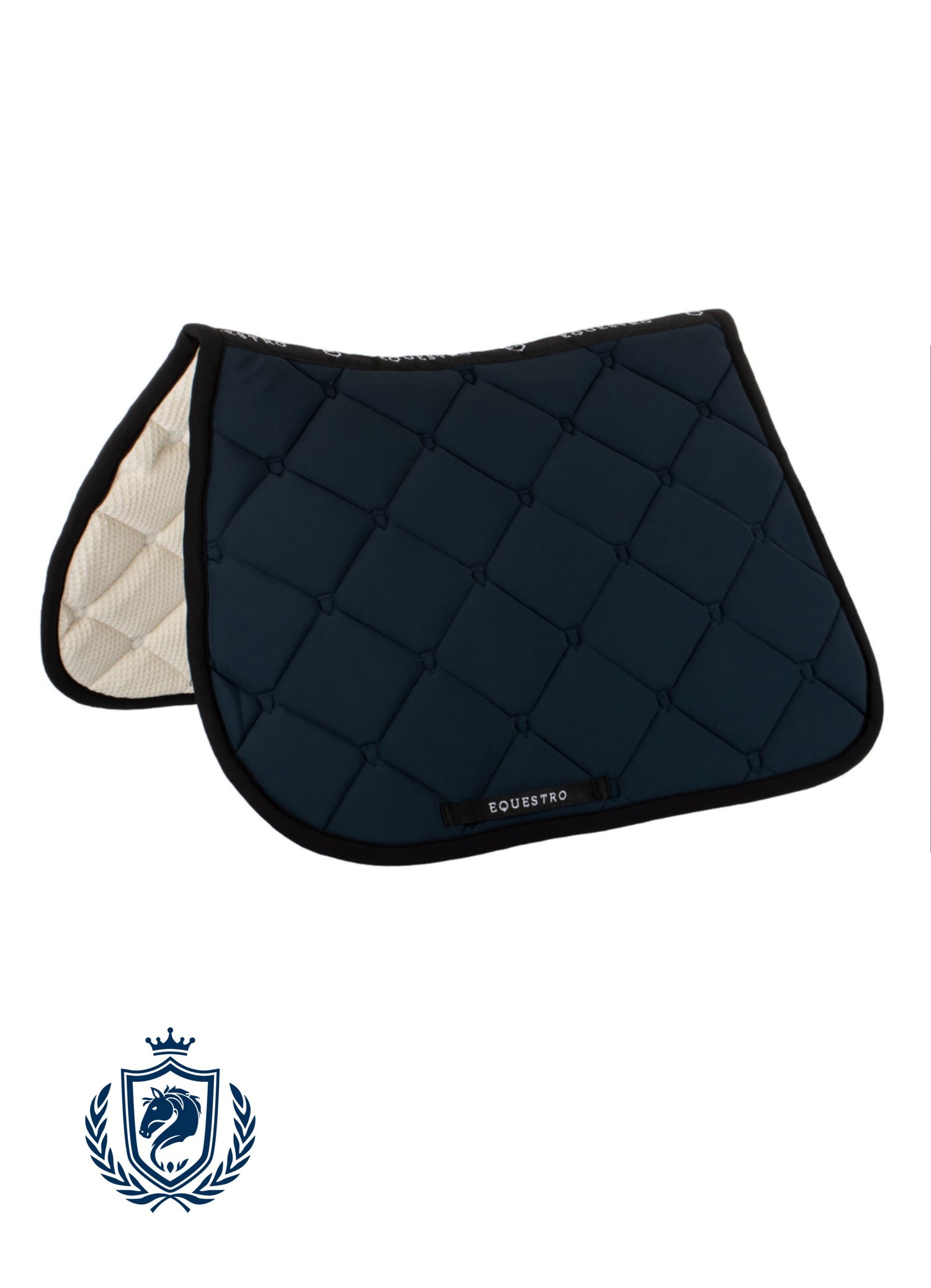 Sottosella da salto multilogo realizzato in tessuto tecnico con trapuntatura a rombi.