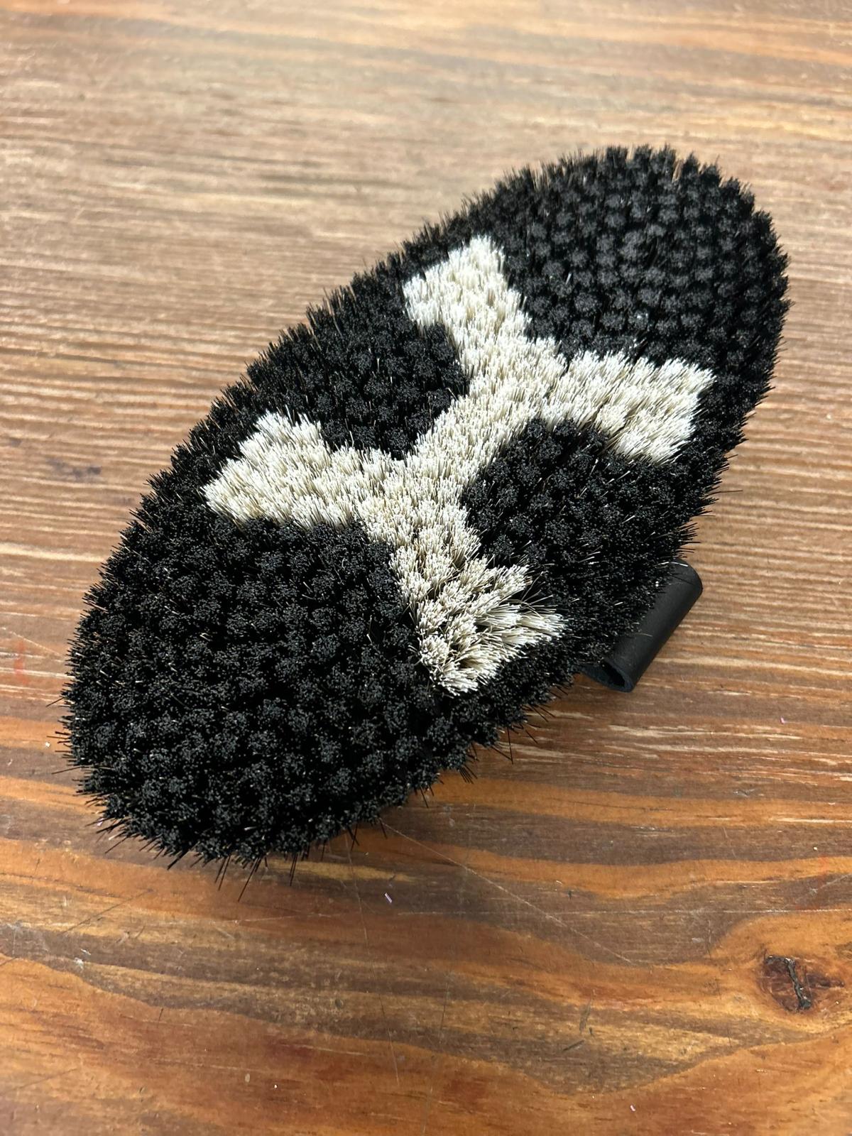Brusca professionale Amazone Haas per il cavallo, con setole naturali bianche e nere, adatta per rendere il manto lucente e setoso.