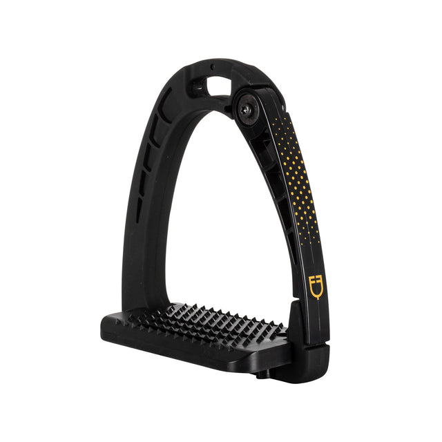 Progettate appositamente per conferire la massima sicurezza a cavallo, le staffe presentano un brevetto per l'apertura laterale, che permette un rilascio rapido del piede in situazioni di emergenza. L'apertura si trova strategicamente poco sopra la panca, evitando che sabbia o sassi possano ostacolarne il corretto funzionamento.