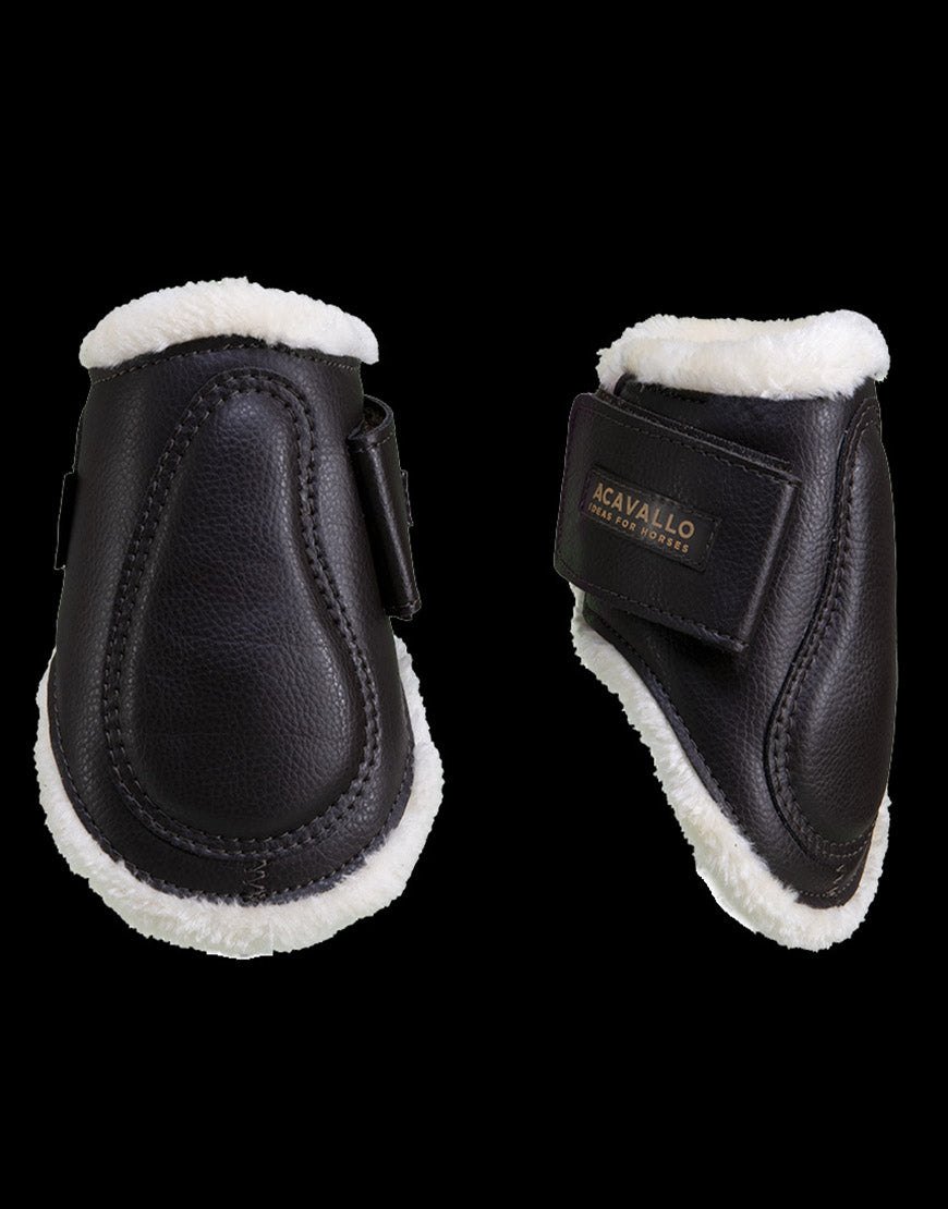 Le paranocche Acavallo in Eco pelle con lana sintetica sono caratterizzate da una chiusura con fascia in velcro che impedisce alla protezione di scivolare ma allo stesso tempo, garantisce la massima libertà di movimento al cavallo.