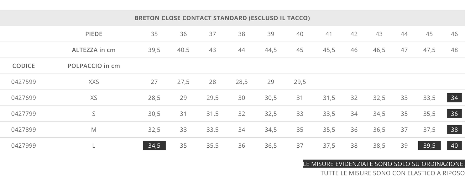 Tutte le taglie sono disponibili su ordinazione, contattaci per info