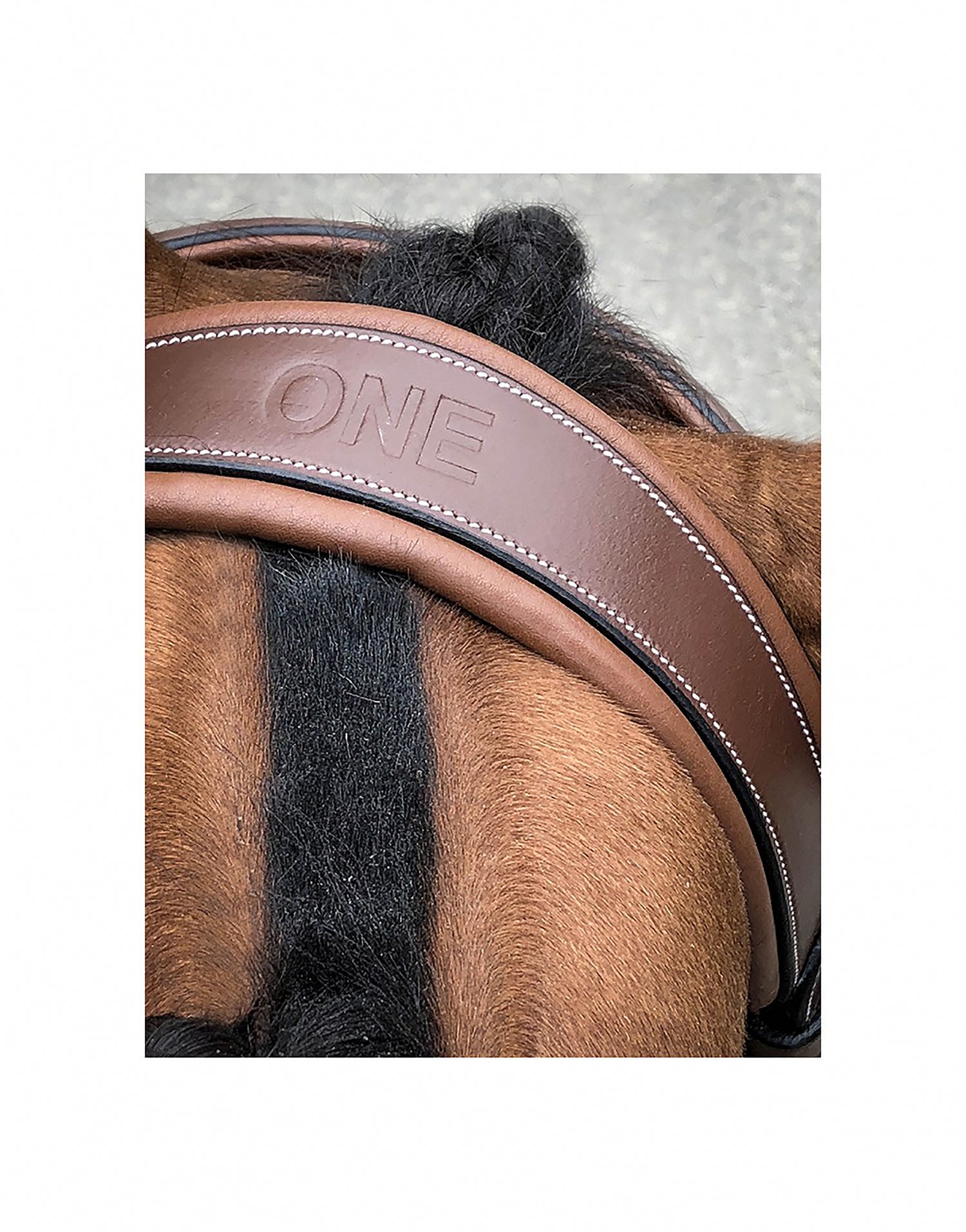 Dalla collezione One , la briglia di Bruxelles è un prodotto essenziale , una base senza tempo . Il frontalino e il nasello sono realizzati in pelle leggermente allargata e ispessita. Un nasello è attaccato al nasello . Il poggiatesta è leggermente anatomico per offrire maggiore comfort al cavallo .