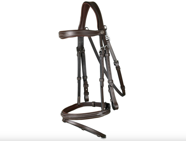 Testiera in cuoio di Buffalo con capezzino e frontalino anatomici.