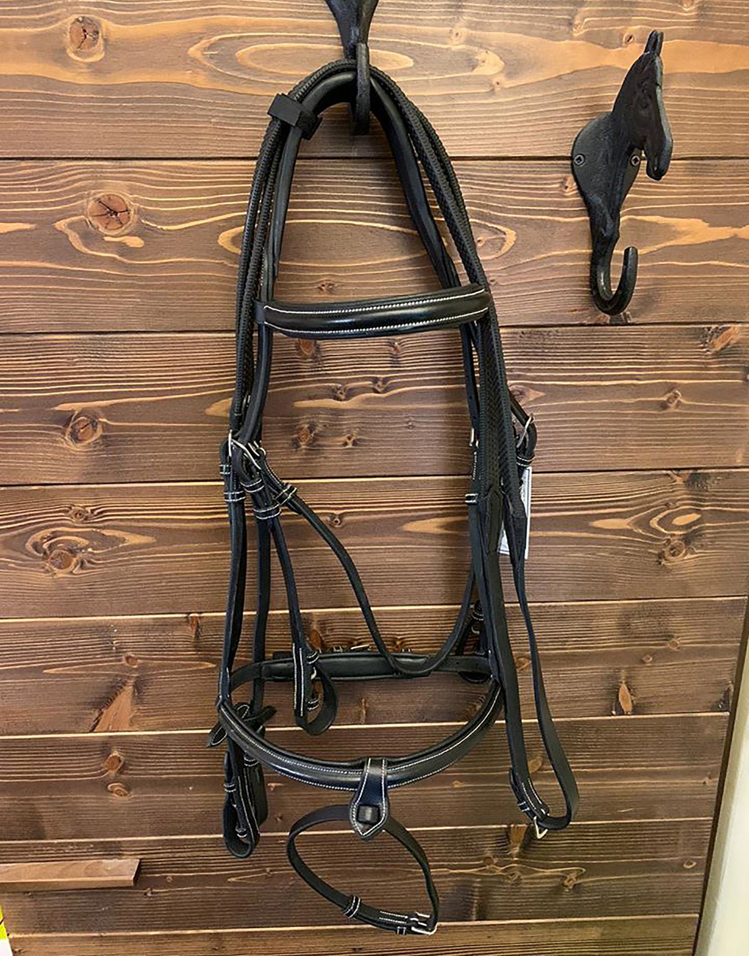 Dalla collezione One , la briglia London è un prodotto essenziale , una base senza tempo . Il frontalino e il nasello sono realizzati in pelle leggermente quadrata, arrotondata, l'intera briglia è arricchita da cuciture bianche. A parte i montanti, tutte le altre parti di questo modello sono rivestite in pelle color tabacco per il modello nocciola. Un nasello rimovibile è attaccato al nasello . Il poggiatesta è leggermente anatomico per fornire di piùconforto per il cavallo .