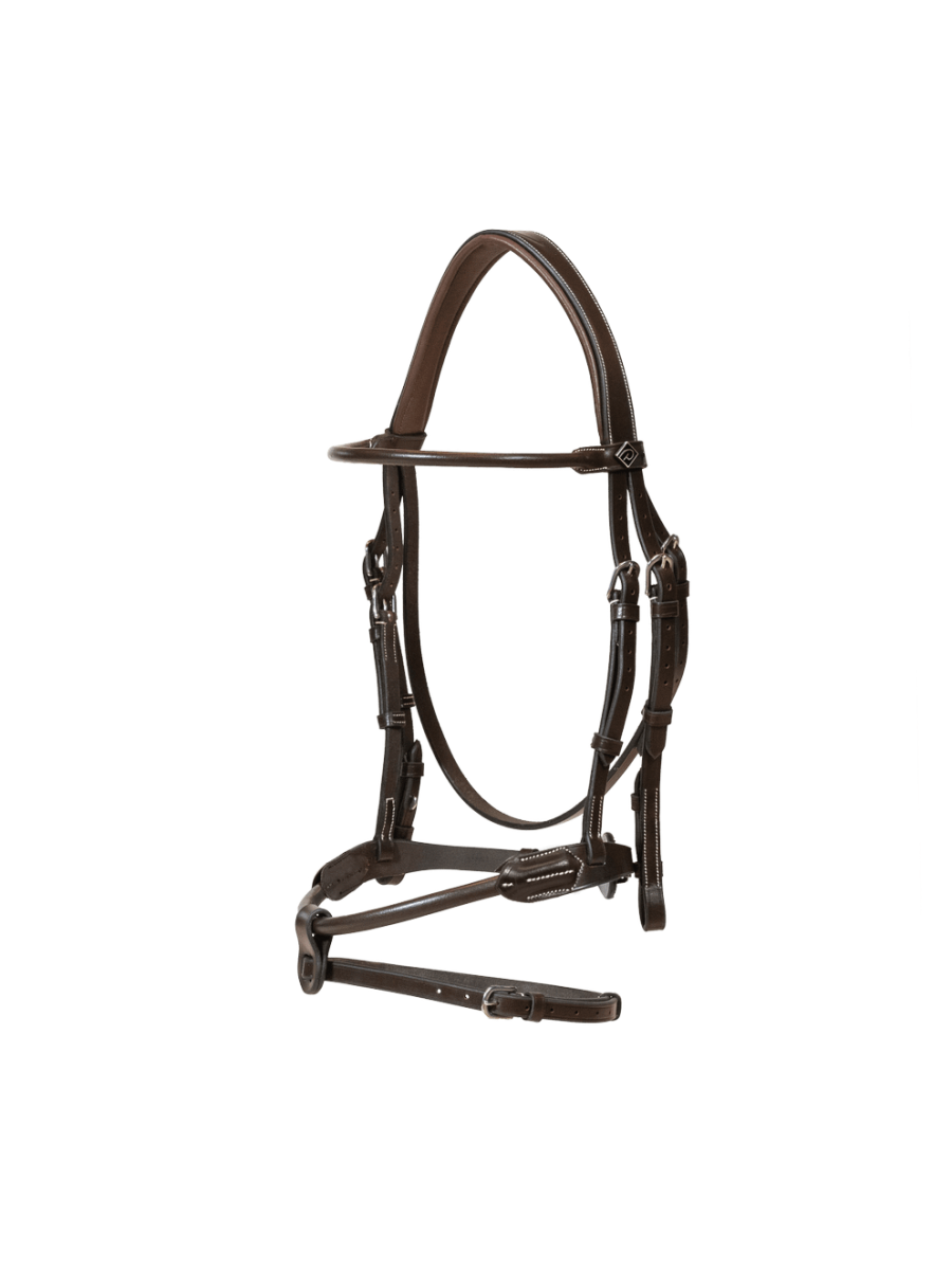 Questa briglia è dotata di un flash rimovibile da ½''. La pelle rotonda è sottile e leggera per offrire il massimo comfort. I movimenti delle orecchie del cavallo sono liberi. Il cavallo ha un campo visivo libero poiché le fibbie delle guance sono sotto il livello degli occhi.