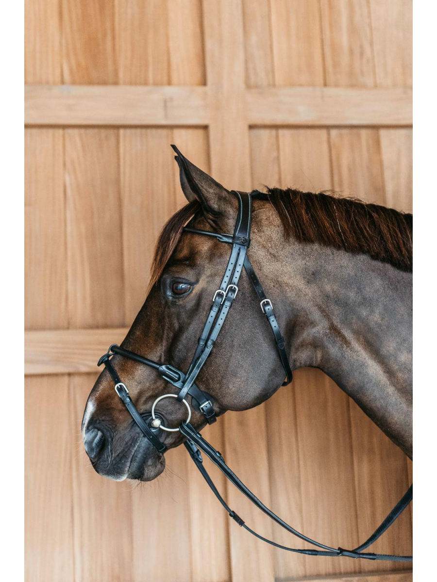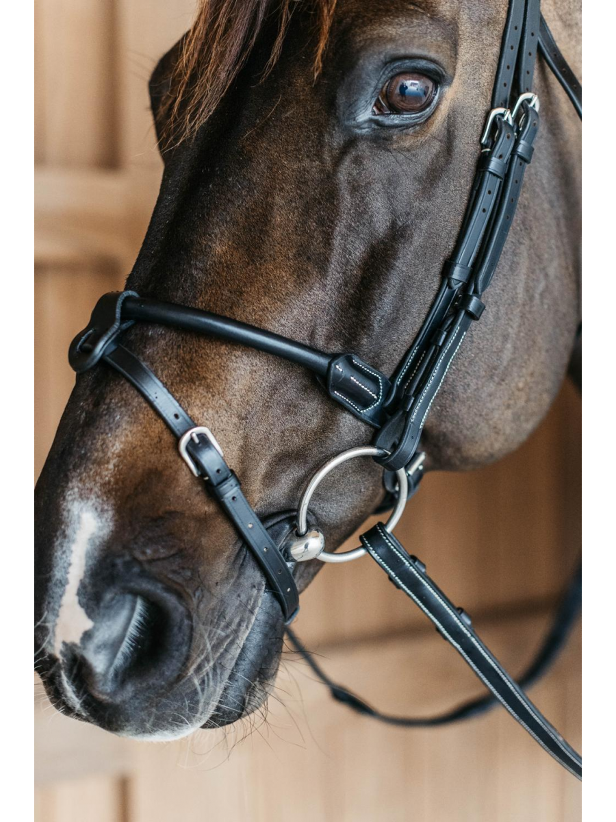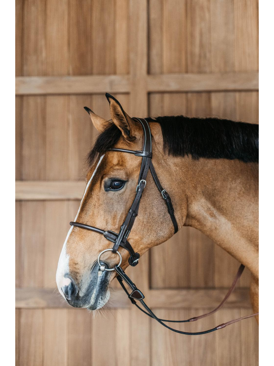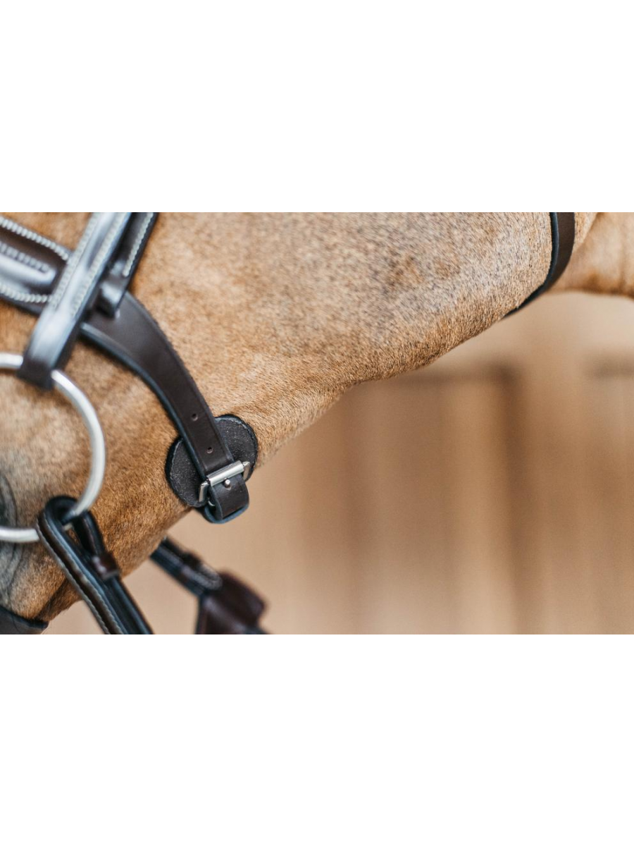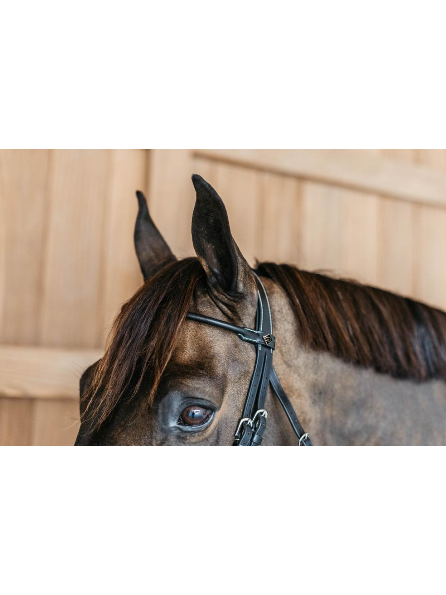 Questa briglia è dotata di un flash rimovibile da ½''. La pelle rotonda è sottile e leggera per offrire il massimo comfort. I movimenti delle orecchie del cavallo sono liberi. Il cavallo ha un campo visivo libero poiché le fibbie delle guance sono sotto il livello degli occhi.